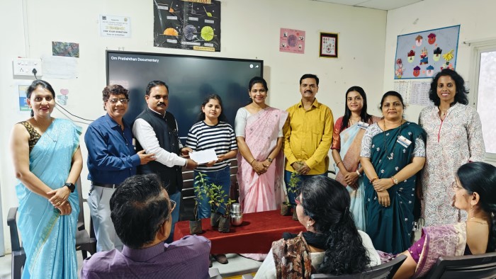 ओम प्रतिष्ठान विद्यादान योजना निधी उभारण्यासाठी “भाऊबीज” आणि “रद्दी पेपर दान” या उपक्रमाचे उद्घाटन प्रीती नारायण यांच्या हस्ते करण्यात आले.