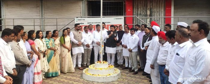 पिंपरी – भारताचा ७७ वा प्रजासत्ताक दिन राष्ट्रवादी काँग्रेस पार्टीच्या वतीने मध्यवर्ती कार्यालय, खराळवाडी, पिंपरी येथे शहराध्यक्ष योगेश बहल यांच्या हस्ते ध्वजारोहण कार्यक्रम संपन्न झाला.